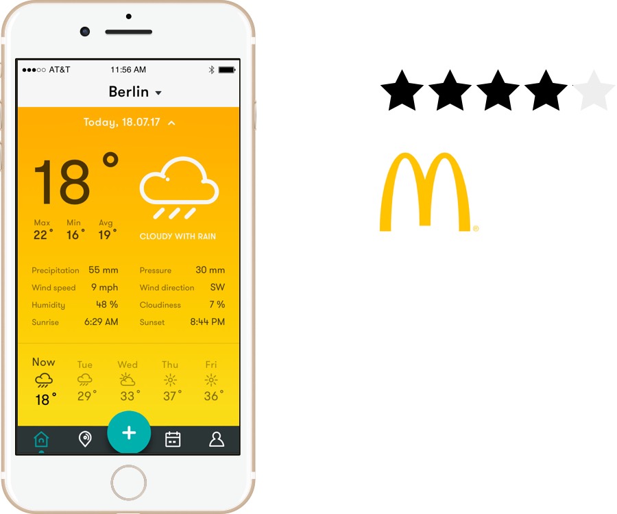 Мы опубликовали раздел с расширенным прогнозом погоды, после чего оценка приложения выросла с 3,75 до 4 звезд, а у Meinestadt появился новый партнер — крупнейшая сеть ресторанов фаст-фуда, заинтересованная в рекламе через геолокационные push-уведомления.