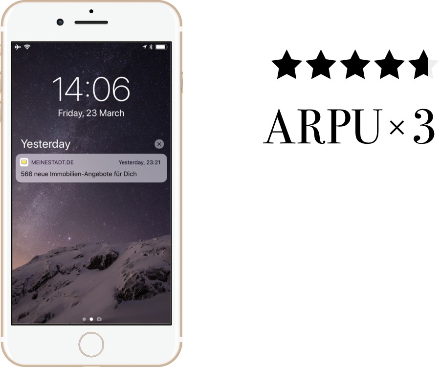 На текущий момент мы ежемесячно рассылаем порядка 17 тысяч таких уведомлений. Проделанная работа помогла нам увеличить количество людей, которые находят квартиры для аренды через Meinestadt, в 3 раза.
